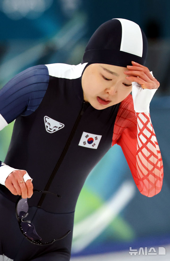[밀라노=뉴시스] 박주성 기자 = 15일 (현지 시간) 이탈리아 밀라노 스피드스케이팅 스타디움에서 열린 2026 밀라노·코르티나 담페초 동계올림픽 스피드 스케이팅 여자 500m 경기에서 김민선이 경기를 마치고 있다. 2026.02.16. [email protected]
