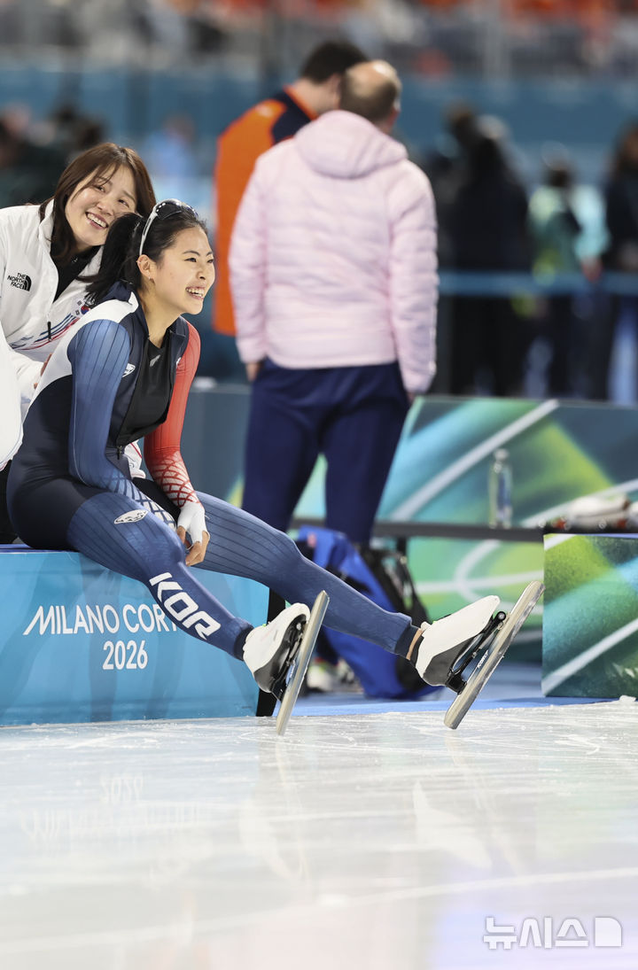 [밀라노=뉴시스] 김근수 기자 = 스피드스케이팅 이나현이 15일(현지 시간) 이탈리아 밀라노 스피드스케이팅 스타디움에서 열린 2026 밀라노·코르티나 담페초 동계올림픽 스피드스케이팅 여자 500m 결선 경기를 마치고 밝게 미소를 보이고 있다. 2026.02.16. [email protected]