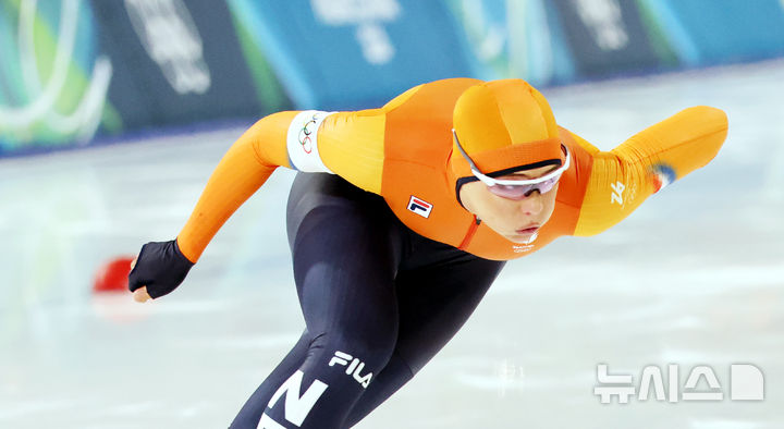 [밀라노=뉴시스] 박주성 기자 = 15일 (현지 시간) 이탈리아 밀라노 스피드스케이팅 스타디움에서 열린 2026 밀라노·코르티나 담페초 동계올림픽 스피드 스케이팅 여자 500m 경기에서 네덜란드 유타 레이르담이 역주하고 있다. 2026.02.16. [email protected]
