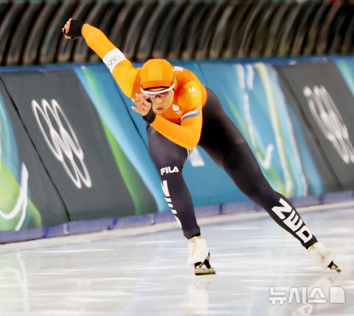 [밀라노=뉴시스] 박주성 기자 = 15일 (현지 시간) 이탈리아 밀라노 스피드스케이팅 스타디움에서 열린 2026 밀라노·코르티나 담페초 동계올림픽 스피드 스케이팅 여자 500m 경기에서 네덜란드 유타 레이르담이 역주하고 있다. 2026.02.16. [email protected]