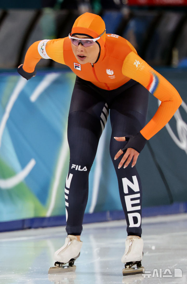 [밀라노=뉴시스] 박주성 기자 = 15일 (현지 시간) 이탈리아 밀라노 스피드스케이팅 스타디움에서 열린 2026 밀라노·코르티나 담페초 동계올림픽 스피드 스케이팅 여자 500m 경기에서 네덜란드 유타 레이르담이 역주하고 있다. 2026.02.16. [email protected]