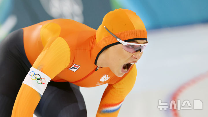 [밀라노=뉴시스] 박주성 기자 = 15일 (현지 시간) 이탈리아 밀라노 스피드스케이팅 스타디움에서 열린 2026 밀라노·코르티나 담페초 동계올림픽 스피드 스케이팅 여자 500m 경기에서 네덜란드 유타 레이르담이 경기를 마치고 환호하고 있다. 2026.02.16. [email protected]