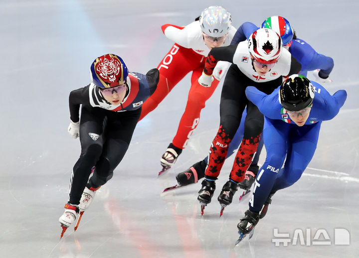 [밀라노=뉴시스] 박주성 기자 = 16일 (현지 시간) 이탈리아 밀라노 아이스 스케이팅 아레나 경기장에서 열린 2026 밀라노·코르티나담페초 동계올림픽 쇼트트랙 여자 1000m 준준결승에서 최민정이 역주하고 있다. 2026.02.16. [email protected]