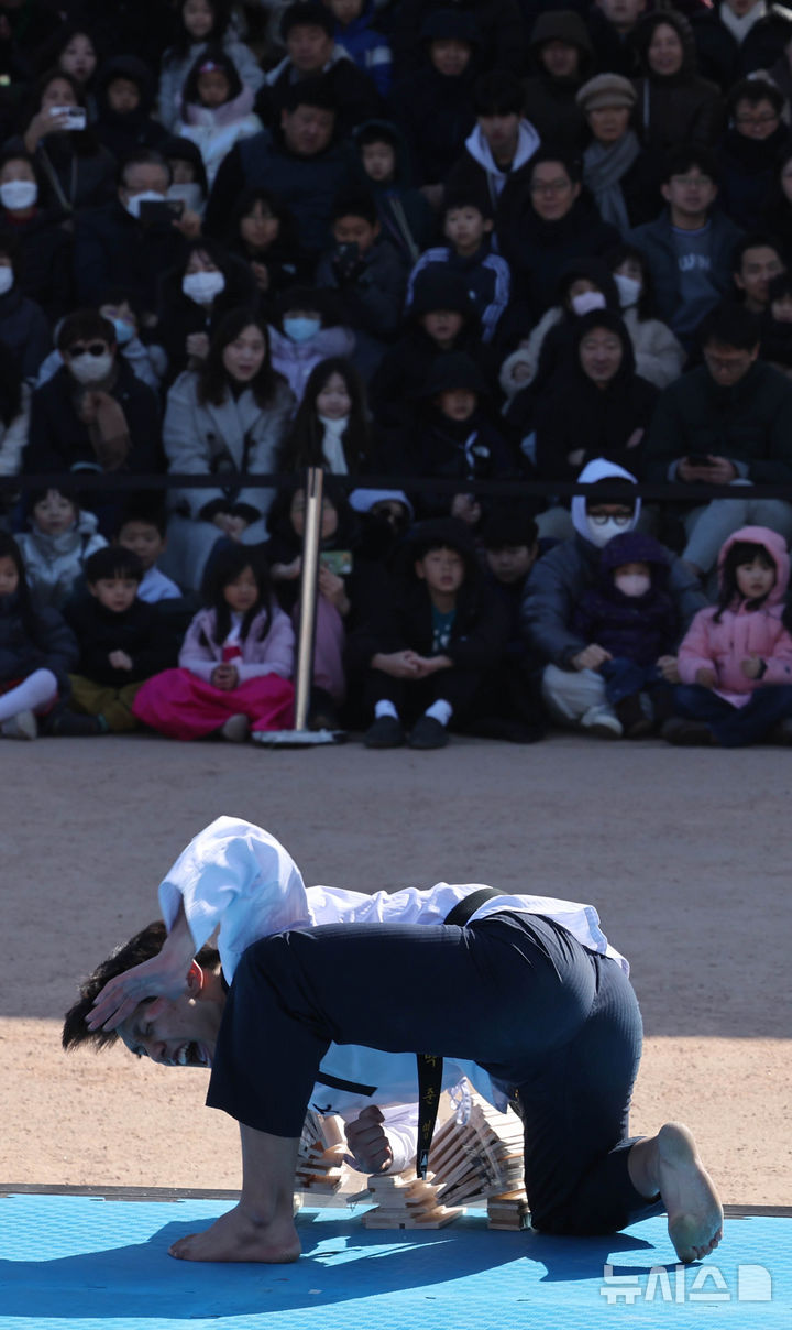 설 연휴 마지막 날 태권도 시범 공연 즐기는 시민들