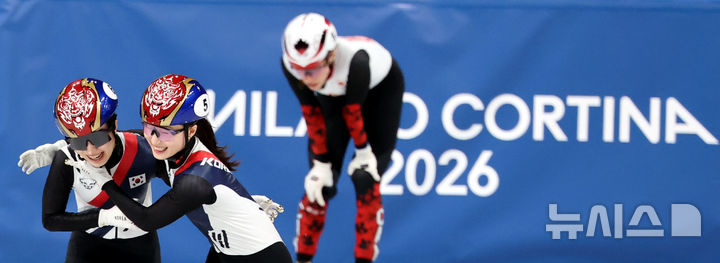 [밀라노=뉴시스] 박주성 기자 = 18일(현지 시간) 이탈리아 밀라노 아이스 스케이팅 아레나 경기장에서 열린 2026 밀라노·코르티나담페초 동계올림픽 쇼트트랙 여자 3000m 계주에서 금메달을 획득한 김길리(왼쪽)와 최민정이 기뻐하고 있다. 2026.02.19. [email protected]