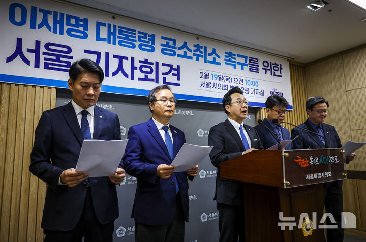 [서울=뉴시스] 정병혁 기자 = 박성준 더불어민주당 국회의원이 19일 서울 중구 서울시의회 별관에서 열린 이재명 대통령 사건 공소 취소 촉구를 위한 서울 기자회견에서 발언하고 있다. 2026.02.19. [email protected]