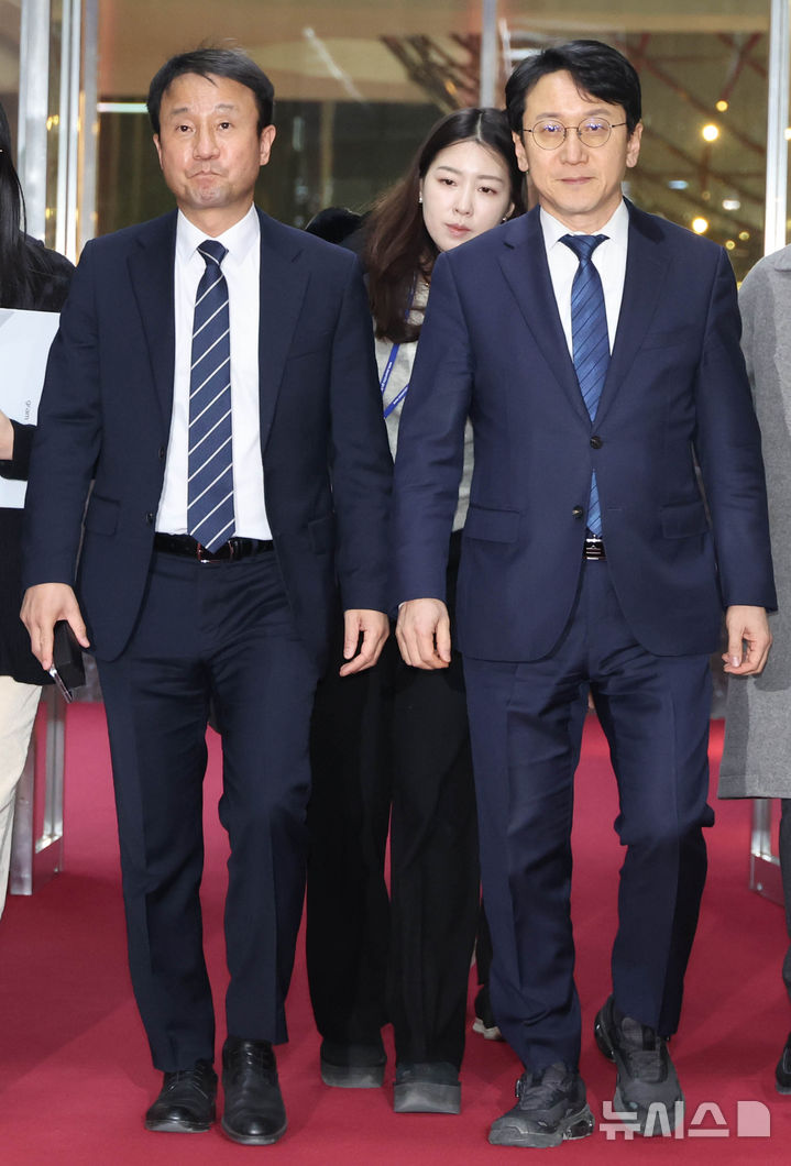 [서울=뉴시스] 조성봉 기자 = 한병도 더불어민주당 원내대표와 천준호 원내운영수석부대표가 19일 오후 서울 여의도 국회에서 본회의 개최 관련 우원식 국회의장을 면담하기 위해 집무실로 향하고 있다. 2026.02.19. [email protected]