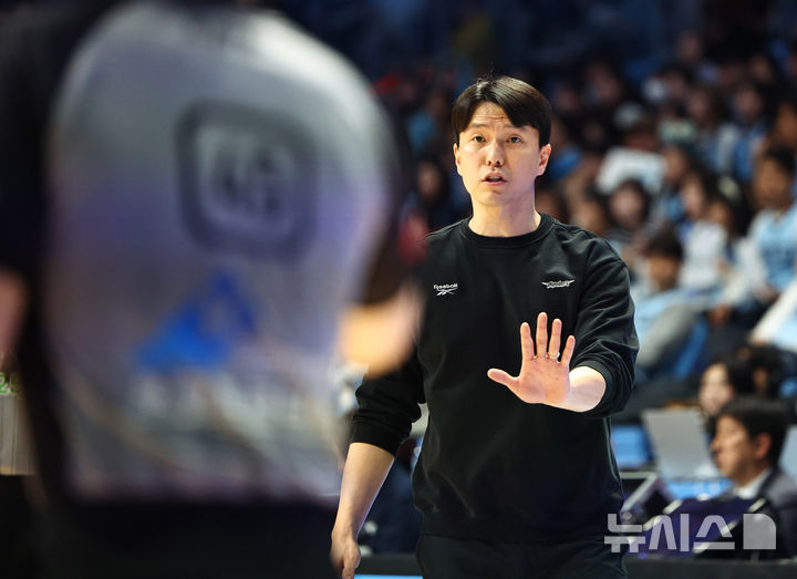 [고양=뉴시스] 김명년 기자 = 19일 경기 고양시 고양 소노아레나에서 열린 2025-2026 KBL 프로농구 고양 소노와 서울 삼성의 경기, 삼성 김효범 감독이 심판에게 항의하고 있다. 2026.02.19. [email protected]