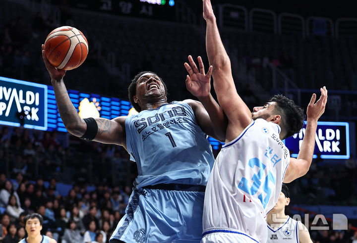[고양=뉴시스] 김명년 기자 = 19일 경기 고양시 고양 소노아레나에서 열린 2025-2026 KBL 프로농구 고양 소노와 서울 삼성의 경기, 소노 네이든 나이트가 레이업하고 있다. 2026.02.19. [email protected]