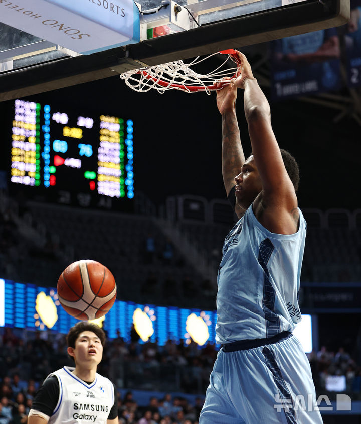 [고양=뉴시스] 김명년 기자 = 19일 경기 고양시 고양 소노아레나에서 열린 2025-2026 KBL 프로농구 고양 소노와 서울 삼성의 경기, 소노 네이던 나이트가 덩크슛을 성공시키고 있다. 2026.02.19. [email protected]