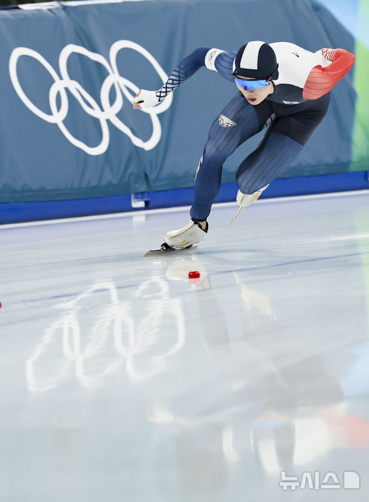 [밀라노=뉴시스] 김근수 기자 = 대한민국 스피드스케이팅 정재원이 19일(현지 시간) 이탈리아 밀라노 스피드스케이팅 스타디움에서 열린 2026 밀라노·코르티나 담페초 동계올림픽 스피드 스케이팅 남자 1500m 경기에서 역주하고 있다. 2026.02.20. [email protected]