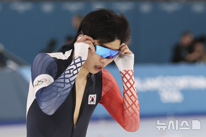 [밀라노=뉴시스] 김근수 기자 = 대한민국 스피드스케이팅 정재원이 19일(현지 시간) 이탈리아 밀라노 스피드스케이팅 스타디움에서 열린 2026 밀라노·코르티나 담페초 동계올림픽 스피드 스케이팅 남자 1500m 경기를 마치고 숨을 고르고 있다. 2026.02.20. [email protected]