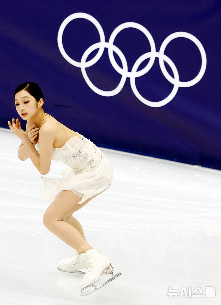 [밀라노=뉴시스] 박주성 기자 = 19일 (현지 시간) 이탈리아 밀라노 아이스 스케이팅 아레나 경기장에서 열린 2026 밀라노·코르티나담페초 동계올림픽 피겨 스케이팅 여자 싱글 프리 프로그램에서 신지아가 경기를 하고 있다. 2026.02.20. [email protected]