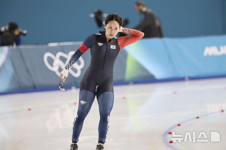[밀라노=뉴시스] 김근수 기자 = 스피드스케이팅 박지우가 20일(현지 시간) 이탈리아 밀라노 스피드 스케이팅 스타디움에서 열린 스피드스케이팅 여자 1500m 결선 경기에서 역주를 마치고 숨을 고르고 있다. 2026.02.21. [email protected]