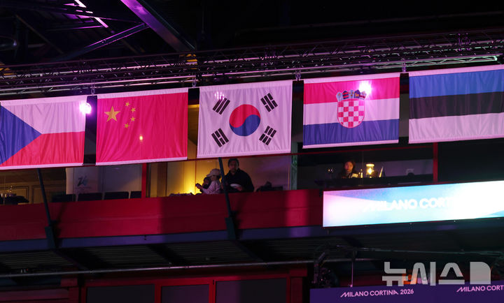 [밀라노=뉴시스] 박주성 기자 = 20일(현지 시간) 이탈리아 밀라노 아이스스케이팅 아레나에 잘못된 디자인의 태극기가 여전히 게양돼 있다. 2026.02.21. [email protected]