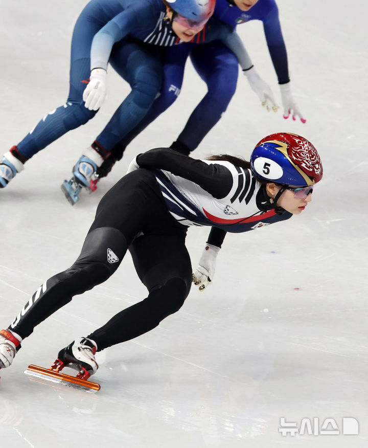 [밀라노=뉴시스] 박주성 기자 = 20일 (현지 시간) 이탈리아 밀라노 아이스 스케이팅 아레나 경기장에서 열린 2026 밀라노·코르티나담페초 동계올림픽 쇼트트랙 여자 1500m 준준결승에서 최민정이 역주하고 있다. 2026.02.21. [email protected]