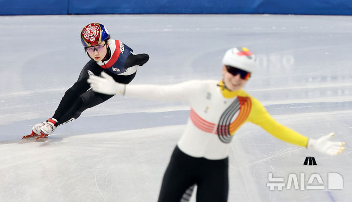 [밀라노=뉴시스] 박주성 기자 = 20일 (현지 시간) 이탈리아 밀라노 아이스 스케이팅 아레나 경기장에서 열린 2026 밀라노·코르티나담페초 동계올림픽 쇼트트랙 여자 1500m 준준결승에서 최민정이 역주하고 있다. 2026.02.21. [email protected]