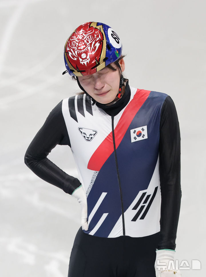 [밀라노=뉴시스] 박주성 기자 = 20일 (현지 시간) 이탈리아 밀라노 아이스 스케이팅 아레나 경기장에서 열린 2026 밀라노·코르티나담페초 동계올림픽 쇼트트랙 여자 1500m 준결승에서 노도희가 넘어진 뒤 고통을 호소하고 있다. 2026.02.21. [email protected]