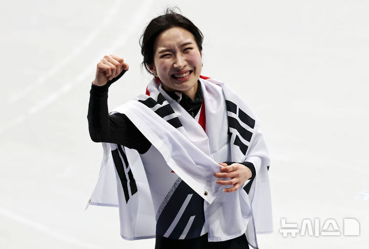 [밀라노=뉴시스] 김근수 기자 = 쇼트트랙 김길리가 20일(현지 시간) 이탈리아 밀라노 아이스스케이팅 아레나에서 열린 2026 밀라노·코르티나 담페초 동계올림픽 쇼트트랙 여자 1500m 결승에서 금메달을 획득한 뒤 주먹을 쥐고 기뻐머니하고 있다. 2026.02.21. [email protected]