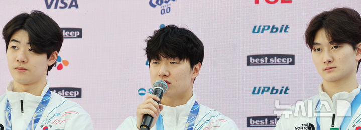 [밀라노=뉴시스] 박주성 기자 = 쇼트트랙 남자 대표팀 이정민이 21일(현지시간) 이탈리아 밀라노의 빌라 네키 캄필리오(Villa Necchi Campiglio)에 마련된 코리아하우스에서 기자회견에서 취재진 질문에 답하고 있다. 2026.02.21. [email protected]
