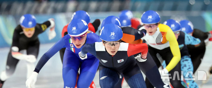 [밀라노=뉴시스] 박주성 기자 = 스피드스케이팅 박지우가 21일(현지시간) 이탈리아 밀라노 스피드스케이팅 스타디움에서 열린 2026 밀라노·코르티나담페초 동계올림픽 스피드 스케이팅 여자 매스 스타트 준결승에서 역주하고 있다. 2026.02.21. [email protected]
