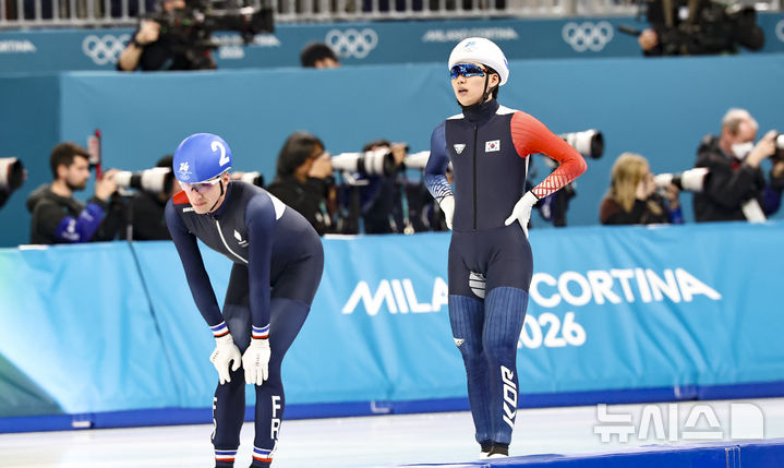 [밀라노=뉴시스] 김근수 기자 = 스피드스케이팅 정재원이 21일(현지시간) 이탈리아 밀라노 스피드스케이팅 스타디움에서 열린 2026 밀라노·코르티나담페초 동계올림픽 스피드 스케이팅 남자 매스 스타트 결승에서 5위로 들어오고 아쉬워하고 있다. 2026.02.21. [email protected]