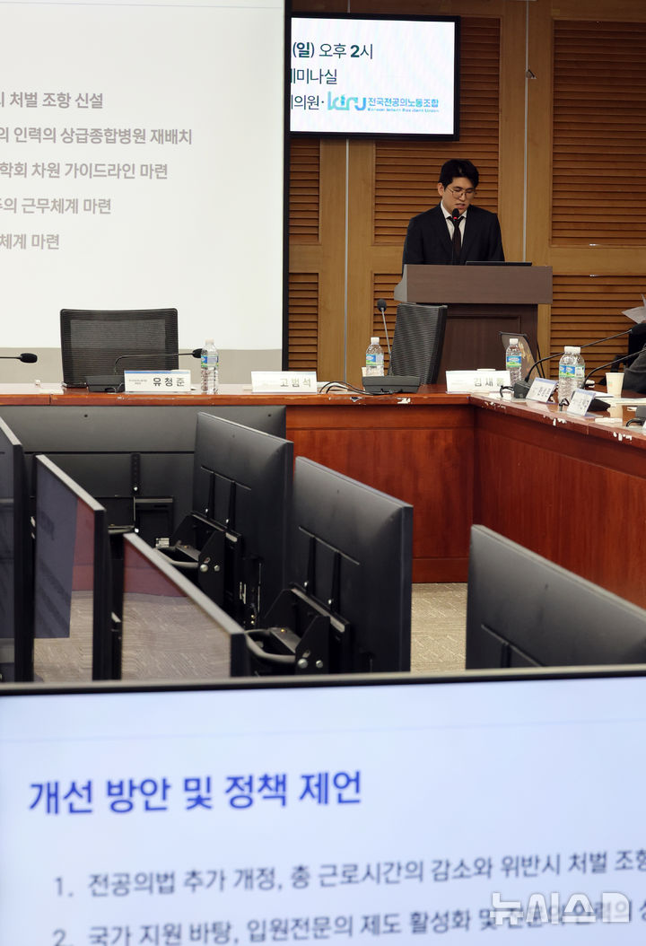 [서울=뉴시스] 김금보 기자 = 22일 오후 서울 여의도 국회 의원회관에서 '전공의 건강권 확보와 수련환경 개선을 위한 국회 토론회'가 진행되고 있다. 2026.02.22. [email protected]