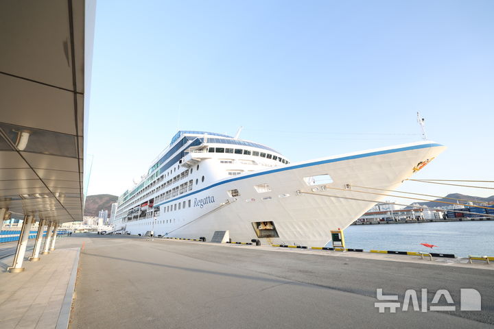 최대 승객 650명과 선원 372명을 태운 리가타호는 이날 오전 7시 입항해 24일 오전 10시 출항하는 국내 첫 1박2일 일정으로 기항한다. 이번 기항은 부산항이 국내 최초로 크루즈터미널 24시간 운영 체제를 가동한 이후 처음 적용되는 사례다. (사진=BPA 제공) 2026.02.23. [email protected]