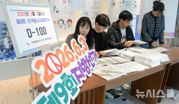 [전주=뉴시스] 김얼 기자 = 제9회 전국동시지방선거가 100일 앞으로 다가온 23일 전북 전주시 전북특별자치도선거관리위원회에서 관계자들이 관련 자료를 정리하고 있다. 2026.02.23. [email protected]