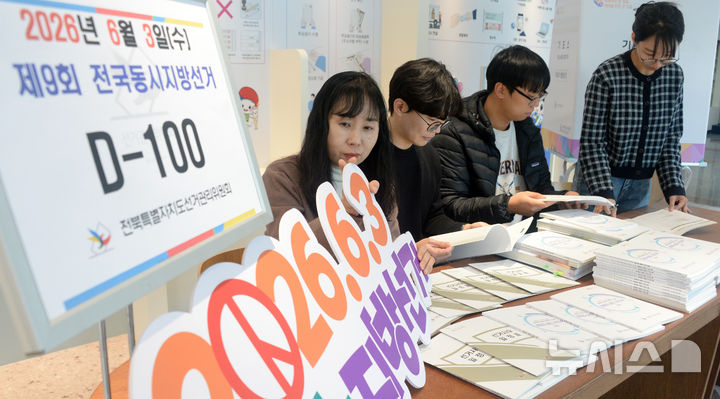 [전주=뉴시스] 김얼 기자 = 제9회 전국동시지방선거가 100일 앞으로 다가온 23일 전북 전주시 전북특별자치도선거관리위원회에서 관계자들이 관련 자료를 정리하고 있다. 2026.02.23. [email protected]