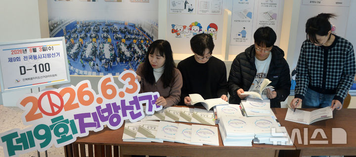 [전주=뉴시스] 김얼 기자 = 제9회 전국동시지방선거가 100일 앞으로 다가온 23일 전북 전주시 전북특별자치도선거관리위원회에서 관계자들이 관련 자료를 정리하고 있다. 2026.02.23. [email protected]