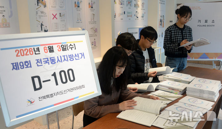 [전주=뉴시스] 김얼 기자 = 제9회 전국동시지방선거가 100일 앞으로 다가온 23일 전북 전주시 전북특별자치도선거관리위원회에서 관계자들이 관련 자료를 정리하고 있다. 2026.02.23. [email protected]