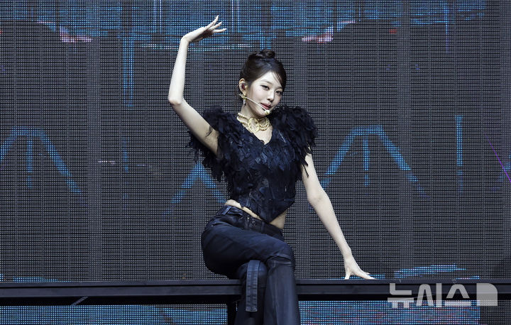 [서울=뉴시스] 김혜진 기자 = 그룹 아이브 장원영이 23일 오후 서울 광진구 광장동 예스24라이브홀에서 열린 아이브 정규 2집 '리바이브 플러스(REVIVE+)' 발매 기념 쇼케이스에서 무대를 선보이고 있다. 2026.02.23. [email protected]