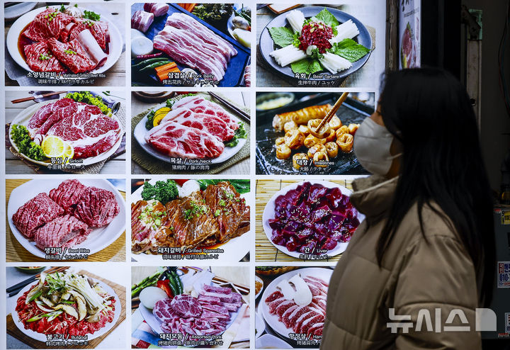 [서울=뉴시스] 정병혁 기자 = 24일 서울 중구 명동거리 음식점에 메뉴 안내문이 붙어있다.