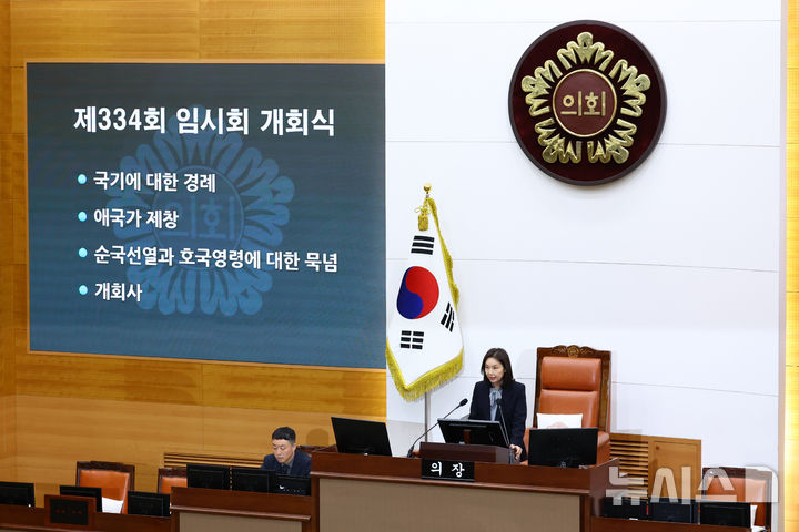 [서울=뉴시스] 황준선 기자 = 최호정 서울시의회 의장이 24일 오후 서울 중구 서울특별시의회에서 열린 서울시의회 제334회 임시회 개회식에서 개회사를 하고 있다. 2026.02.24. [email protected]
