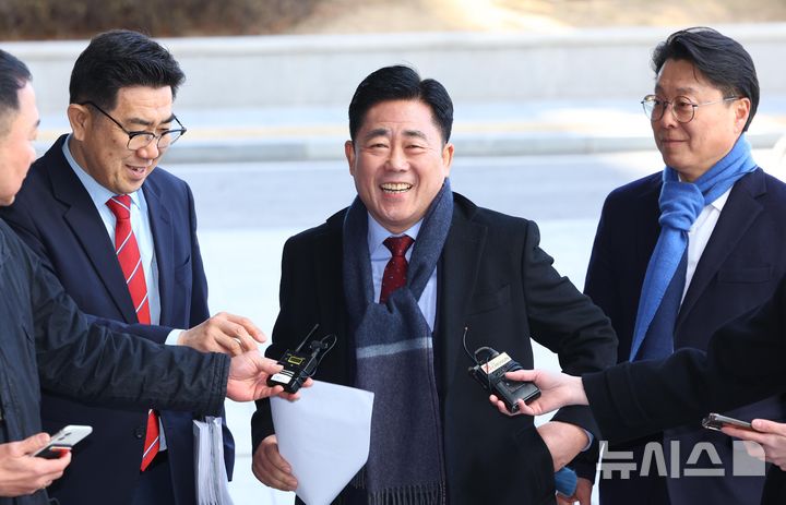 [서울=뉴시스] 황준선 기자 = 통일교 금품 수수 의혹을 받는 김규환 전 미래통합당 의원이 25일 오전 서울 서초구 서울고등검찰청에 마련된 정교유착 비리 의혹을 수사하는 검경 합동수사본부에 출석하고 있다. 2026.02.25. [email protected]