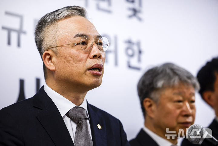 [과천=뉴시스] 정병혁 기자 = 권창영 2차 종합특검팀 특별검사가 25일 경기 과천시 2차 종합특검팀 사무실에서 특검보와 대변인을 소개한 뒤 입장문을 발표하고 있다. 2026.02.25. [email protected]