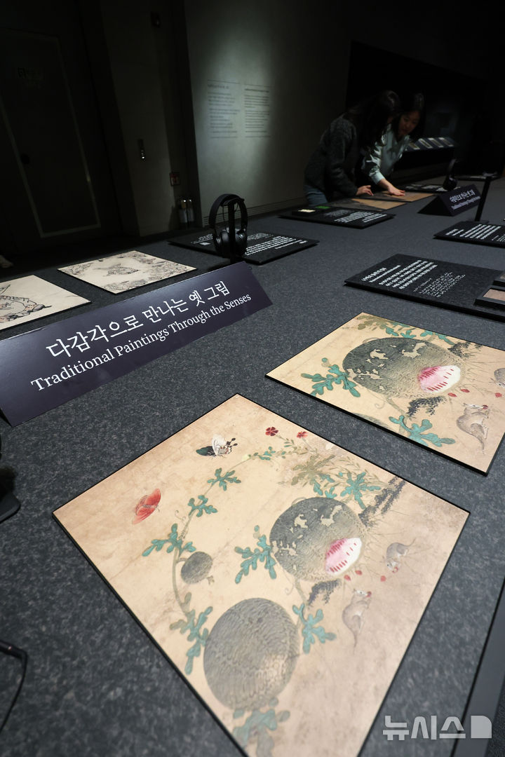 [서울=뉴시스] 배훈식 기자 = 국립중앙박물관 서화실 재개관 언론공개회 참가자들이 25일 오전 서울 용산구 국립중앙박물관 서화실 전시품을 관람하고 있다. 오는 26일 개관하는 국립중앙박물관 서화실에는 겸재 정선의 '신묘년풍악도첩'(보물) 등 70건의 작품이 전시된다. 2026.02.25. [email protected]