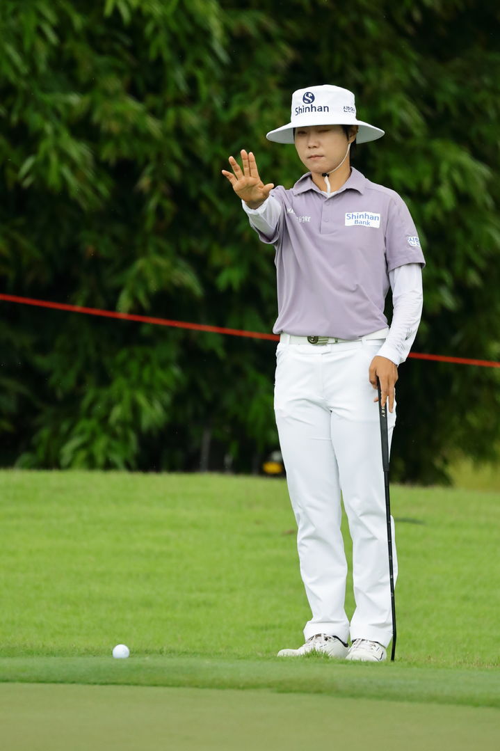 [싱가포르=AP/뉴시스] 이소미가 26일(현지 시간) 싱가포르 센토사 골프클럽에서 열린 미국여자프로골프(LPGA) 투어 HSBC 위민스 월드 챔피언십 첫날 퍼트 준비를 하고 있다. 2026.02.26.