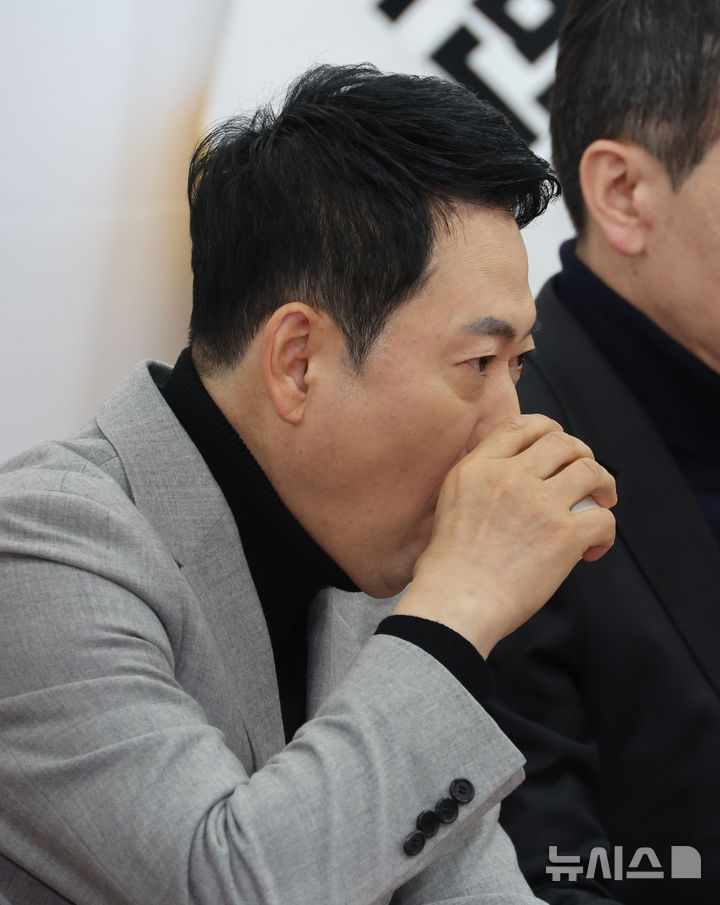 [서울=뉴시스] 김금보 기자 = 장동혁 국민의힘 대표가 26일 오전 서울 여의도 국회에서 열린 최고위원회의에서 물을 마시고 있다. 2026.02.26. [email protected]