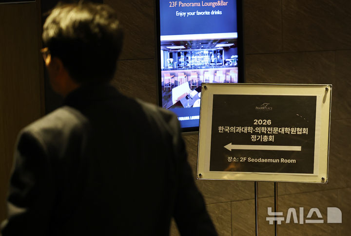 [서울=뉴시스] 최진석 기자 = 26일 서울 한 호텔에서 열린 2026 한국의과대학·의과전문대학원협회 정기총회에 참석자들이 입장하고 있다. 2026.02.26. [email protected]