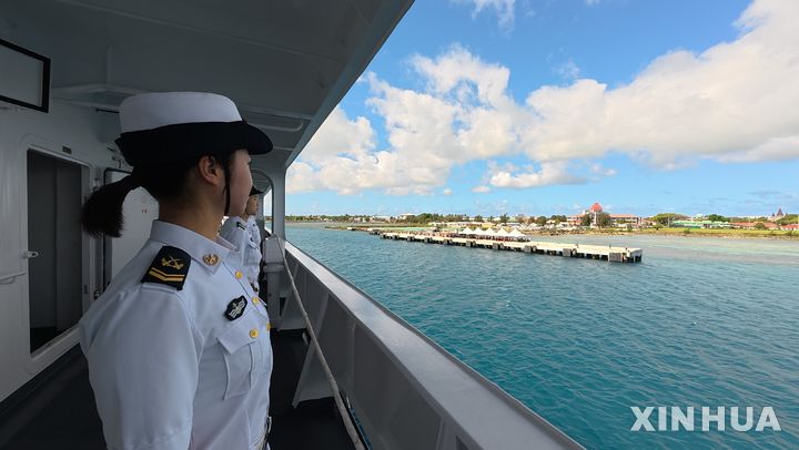 [누쿠알로파=신화/뉴시스] 칠레 정부가 최근 자국 앞바다에 도착한 중국 병원선의 선상 진료 제안을 거절했다고 28일 싱가포르 매체 스트레이츠타임스 등 외신이 보도했다. 사진은 중국 병원선 '실크로드 아크'호가 남태평양 통가 누쿠알로파 항구에 도착한 모습. 2026.02.28.