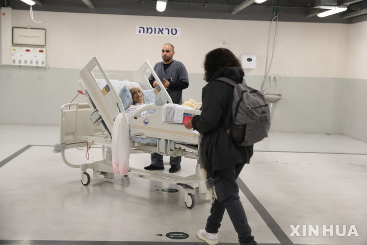 [텔아비브=신화/뉴시스] 정병혁 기자 = 미국이 이란에 대해 군사공격을 강행한 가운데 28일 이스라엘 텔아비브의 한 병원 주차장에서 의료진이 환자를 옮기고 있다. 이스라엘 보건부는 성명에서 "이란에서 발생한 공격 이후 이스라엘의 모든 병원의 경보 수준이 최고 수준으로 격상되었으며, 입원 환자들은 대피소로 이송되었고, 모든 비응급 병원 활동은 중단됐다"고 밝혔다. 2026.02.28.