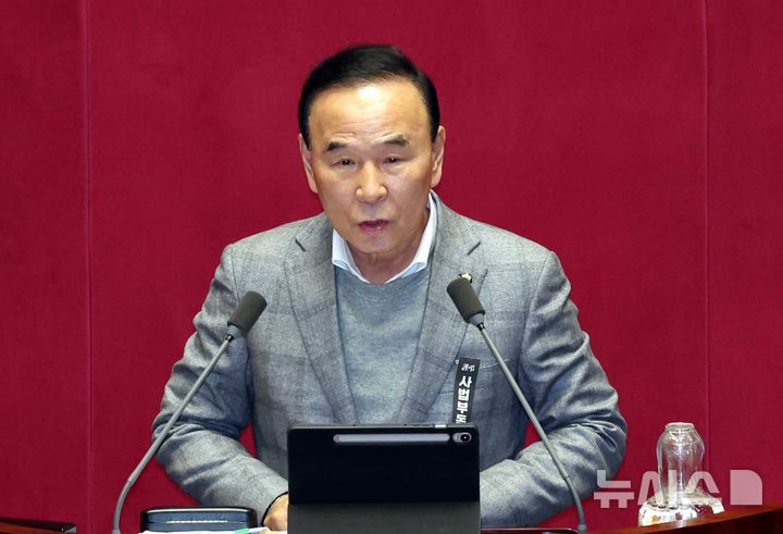 [서울=뉴시스] 조성봉 기자 = 박덕흠 국민의힘 의원이 28일 서울 여의도 국회에서 열린 본회의에서 국민투표법 전부개정법률안(대안)에 대해 무제한토론(필리버스터)을 하고 있다. 2026.02.28. [email protected]