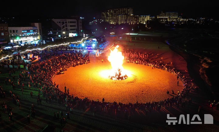 [삼척=뉴시스]홍춘봉 기자 = 지난달 28일 강원 삼척시 삼척해수욕장 백사장 일원에서 '2026 삼척 정월대보름제' 행사로 달집태우기가 진행되고 있다.(사진=삼척시 제공)2026.03.01.photo.newsis.com