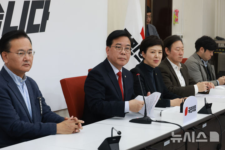 [서울=뉴시스] 고승민 기자 = 송언석 국민의힘 원내대표가 1일 서울 여의도 국회에서 현안 기자회견을 하던 중 질문하는 취재진을 바라보고 있다. 2026.03.01. [email protected]
