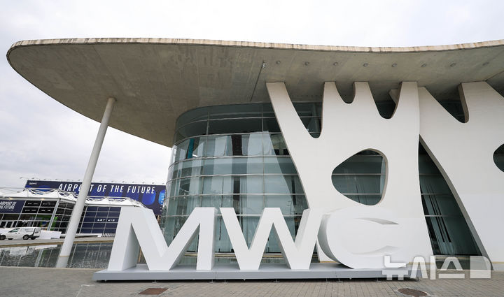 [바르셀로나=뉴시스] 사진공동취재단 = 모바일 월드 콩그레스(MWC)2026 개막을 앞둔 1일(현지 시간) 스페인 바르셀로나 피란 그란 비아 전시장 입구에 MWC 대형 조형물이 설치돼 있다. 2026.03.01. [email protected]