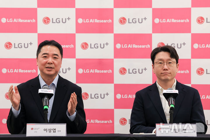 [바르셀로나=뉴시스] 사진공동취재단 = 모바일 월드 콩그레스(MWC)2026 개막을 앞둔 지난 1일(현지 시간) 스페인 바르셀로나 인사이드 바이 멜리나 호텔 강당에서 열린 'LG유플러스-LG AI 연구원 공동 기자간담회'에서 이상엽 LG유플러스 CTO(왼쪽)가 취재진 질문에 답하고 있다. 2026.03.02. [email protected]