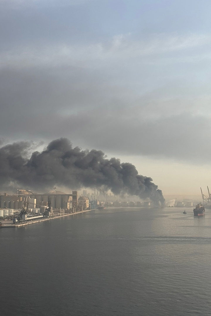 [서울=뉴시스] 추상철 기자 = 전국해상선원노동조합연맹(선원노련)이 2일 성명을 내고 "호르무즈 무력 충돌 확산으로 우리 선원의 안전 확보가 시급하다"고 밝혔다. 사진은 우리 선원이 직접 촬영한 호르무즈 인접 아랍에미리트 제벨알리항. (사진= 전국해상선원노동조합연맹 제공) 2026.03.02. [email protected] *재판매 및 DB 금지