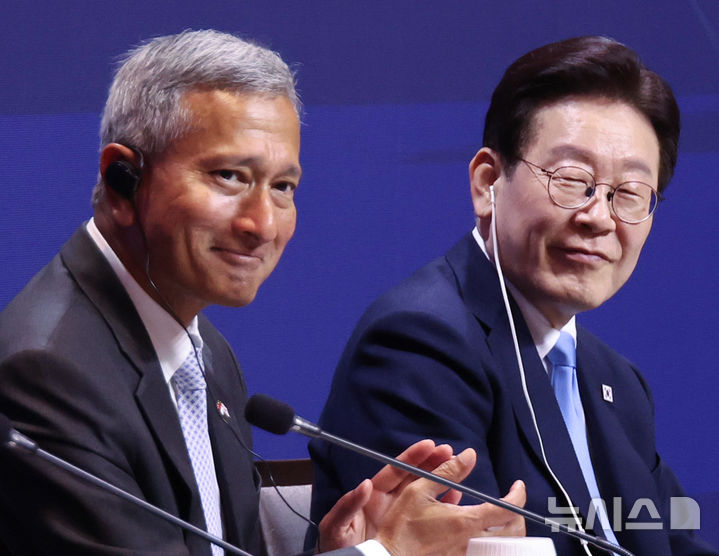 [싱가포르=뉴시스] 최동준 기자 = 싱가포르를 국빈 방문 중인 이재명 대통령이 2일(현지 시간) 한 호텔에서 열린 한-싱 AI 커넥트 서밋에서 참석자 발언을 듣고 있다. 2026.03.02. [email protected]
